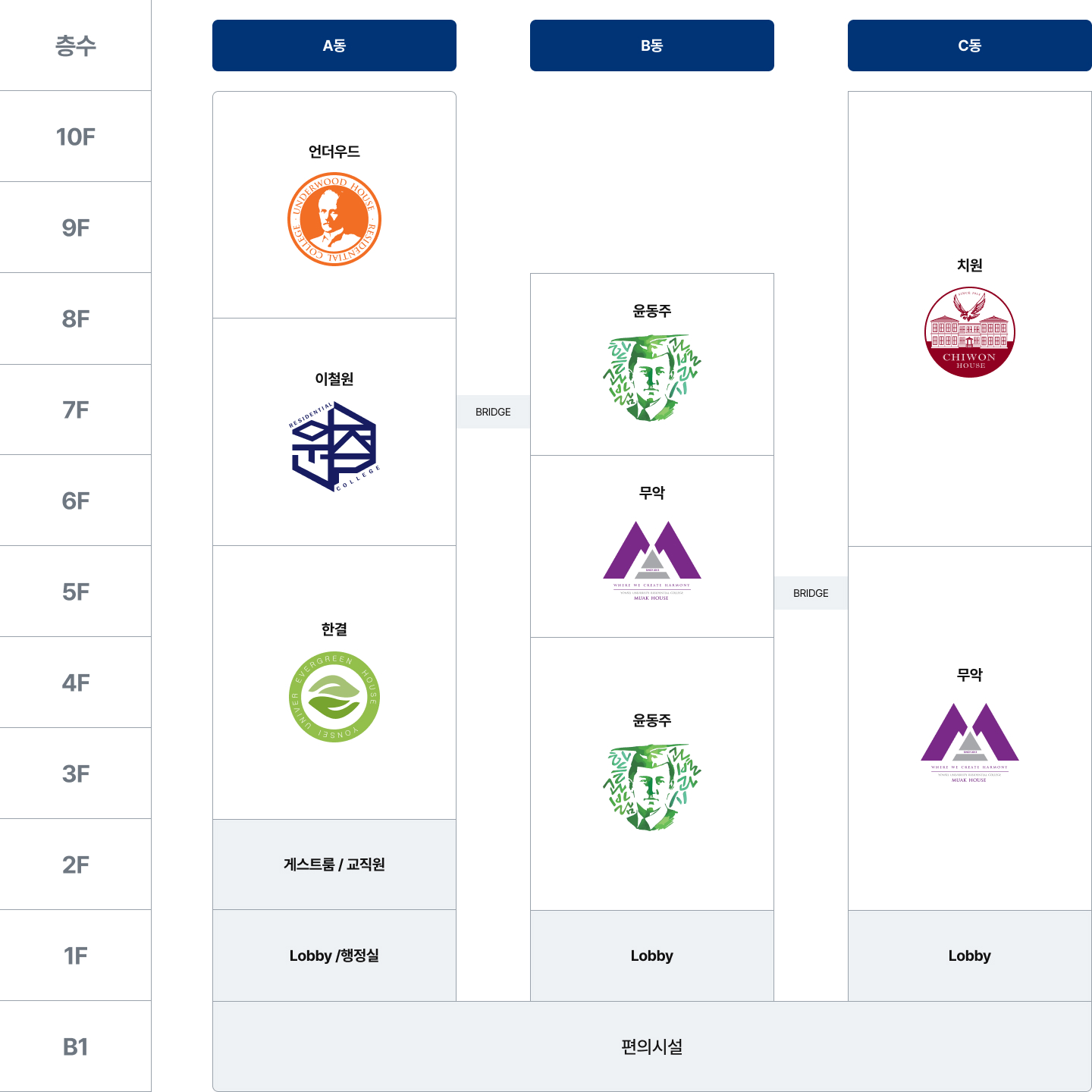 - ※ 7층 높이에서 A동과 연결 브릿지 있음
