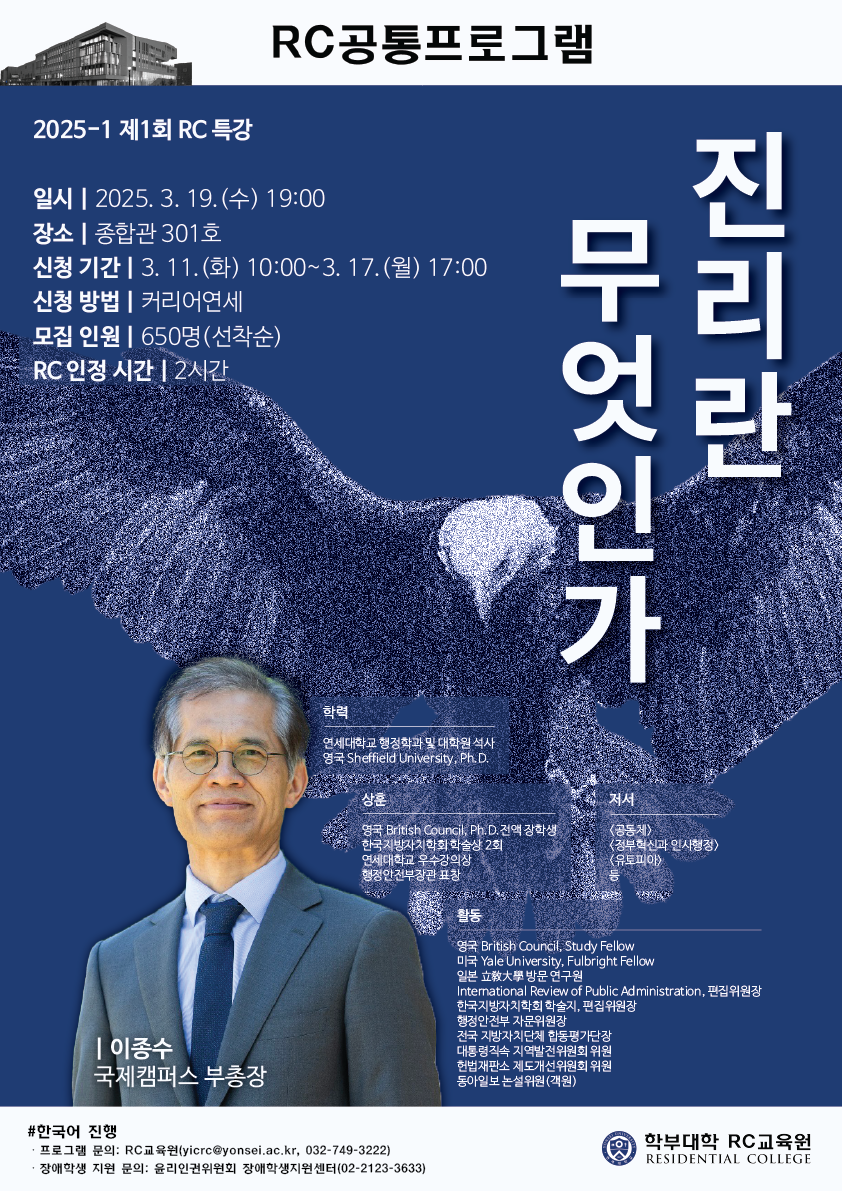 [RC공통] 제1회 RC 특강 <이종수 부총장(연세대 국제캠퍼스)>