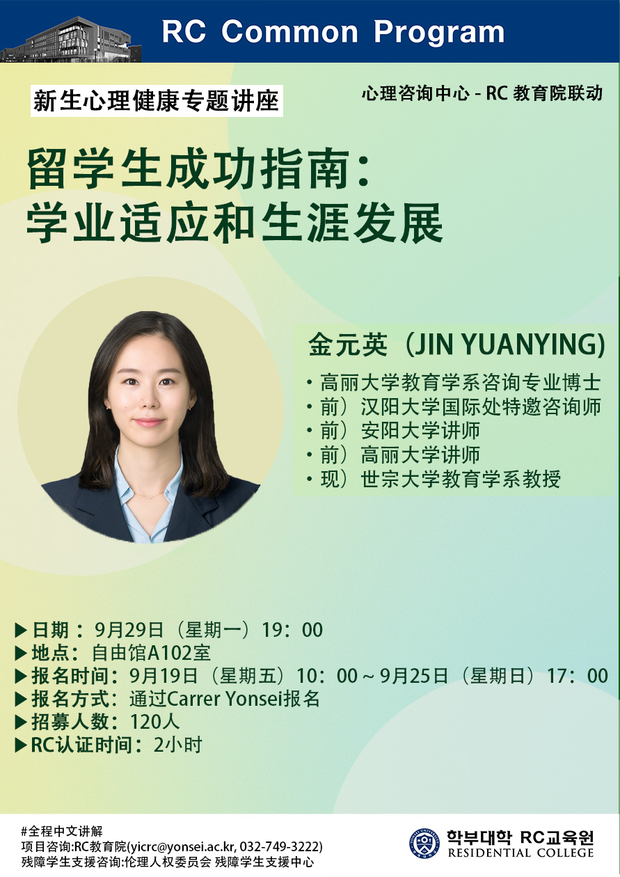 📞 프로그램 문의: RC교육원 (yicrc@yonsei.ac.kr, 032-749-3222)