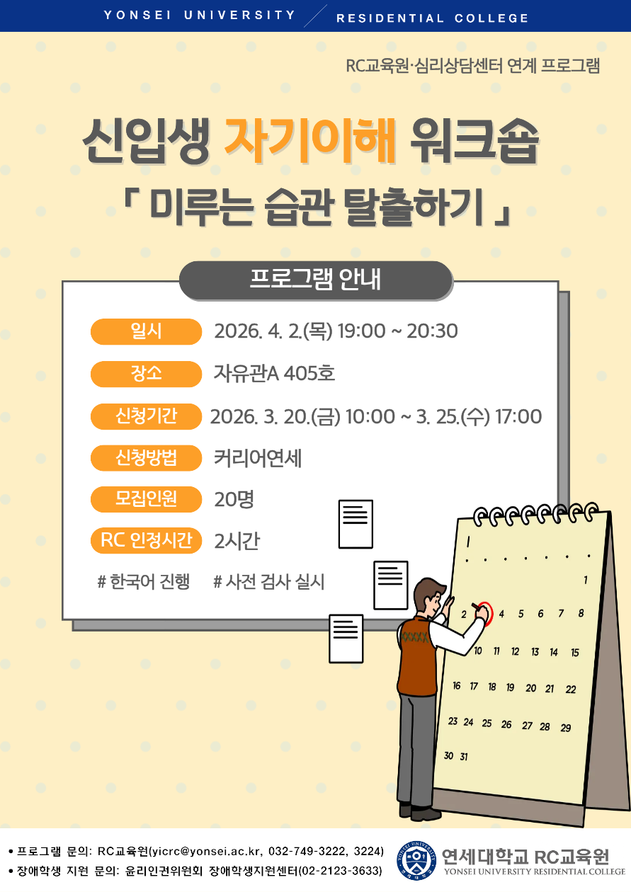 [RC공통프로그램] 신입생 자기이해 워크숍 <미루는 습관 탈출하기> (한국어)